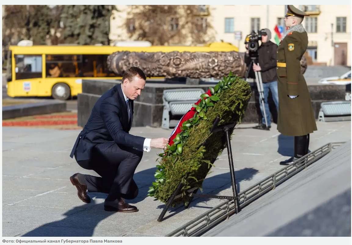Глава региона принял участие в церемонии возложения венка к Монументу Победы в Минске. Это знаковое место, как считает Павел Малков, напоминает о героическом подвиге тех, кто отстоял свободу общей Родины в годы Великой Отечественной войны.