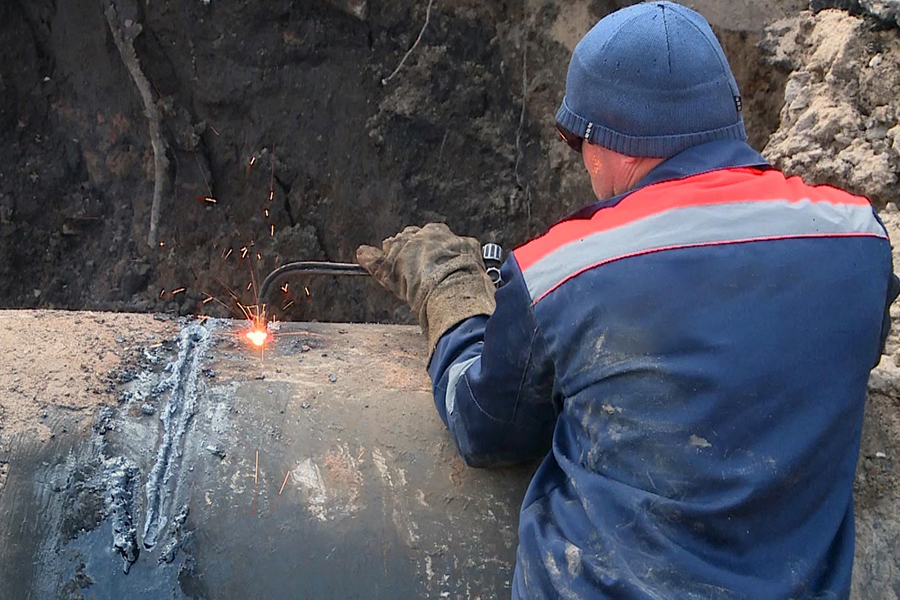 Аварийно-восстановительные работы ведутся в районе магазина №26. Близость к дороге и отсутствие места для складирования грунта потребовали нестандартных решений: землю вывозят за черту города.